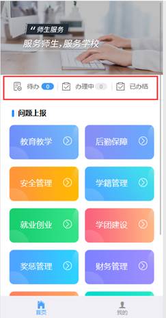 (1)在【待办】中需要对“未评价”的问题进行满意度评价。评价“满意”后该问题办结;选择“一般”和“不满意”时需要填写相关原因,并且可以自主选择“办结”或者“继续办理”,选择“办结”则该问题办结,选择“继续办理”问题将进行二次上报,学校会再次反馈处理结果。二次处理之后如果选择“满意”或者“一般”则问题办结,选择“不满意”时需要填写不满意原因,学校将最终处理结果再次反馈给问题上报人(注意需要在已办结栏目查看最终处理结果)。