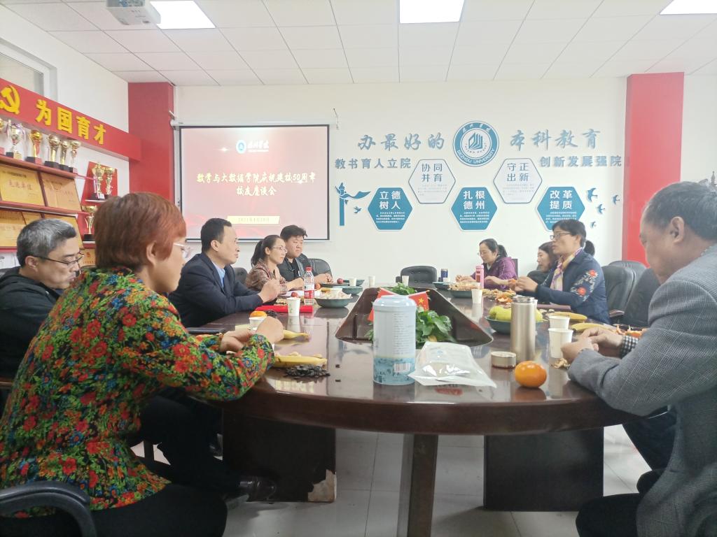 讲座结束后,数学与大数据学院领导老师与闫余新亲切座谈,就有关创新创业人才培养、教育体系构建、创业团队孵化帮扶、产学研合作项目等展开了热烈的讨论,并有关校友与母校的进一步交流和发展达成了建设性意见。