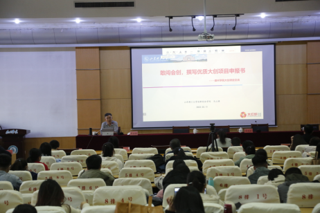 马立修教授为我校师生举办了一场题为“敢闯会创,如何撰写优质大创项目申报书”的专题讲座,讲座在我校厚德楼四楼报告厅举行,我校女人18片毛片60分负责人主持会议。马教授主要从《国家大学生创新创业训练计划管理办法》解读、大创项目申报书写作经验介绍、大创项目申报书形式审查标准等三个方面介绍了大创项目申报及指导等方面的经验做法。马教授的讲座深入浅出、严谨务实,受到了我校师生的一致好评,对我校大创项目的申报具有非常强的指导意义和借鉴意义。