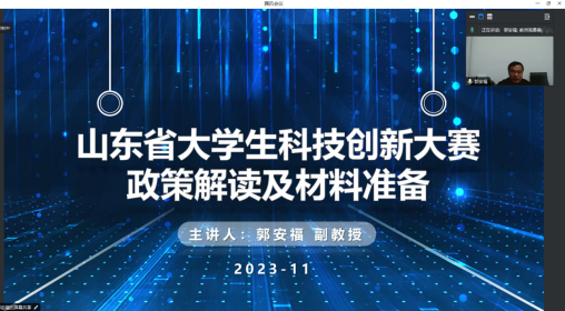 11月15日晚,我校女人18片毛片60分邀请聊城大学工程训练中心主任郭安福教授为师生举办了一场题为“山东省大学生科创赛政策解读及材料准备”的专题讲座,讲座以腾讯会议形式举行。