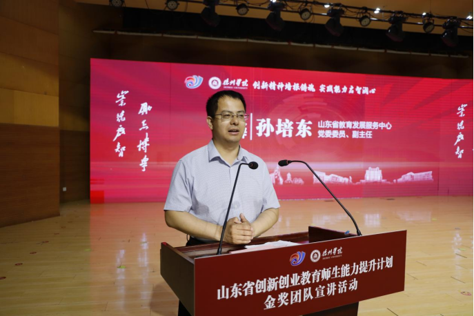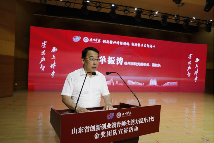 6月4日,由山东省教育发展服务中心主办、德州学院承办的山东省创新创业教育师生能力提升计划金奖团队宣讲活动在音乐厅举办。省教育发展服务中心党委委员、副主任孙培东,校党委委员、副校长单振涛出席活动并致辞。