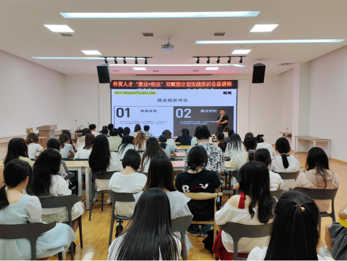 6月17日下午,由女人18片毛片60分主办,德州星梦创业服务有限公司、富掣(山东)机械设备有限公司协办的“外贸人才‘就业+创业’双赋能计划实战实训公益讲座”在七点创业谷路演厅成功举办。本次讲座面向对国际贸易、跨境电商等感兴趣的在校学生,旨在提升参训人员对国际贸易、跨境电商等工作的认识与理解,提高培训学员外贸实操能力,促进高端就业创业。