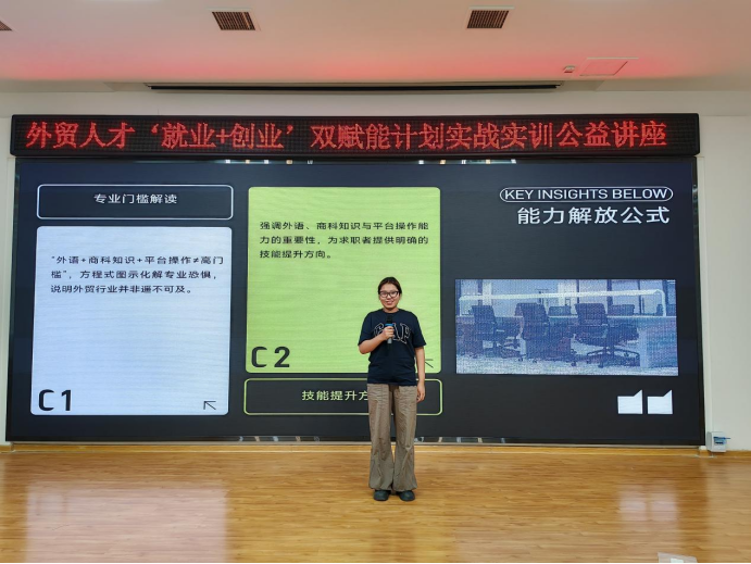 随后,该公司优秀从业者、学校国际贸易专业在校生分享了自己从事外贸业务的成长历程与成功经验,为参会同学提供了从事外贸行业就业创业的良好榜样。