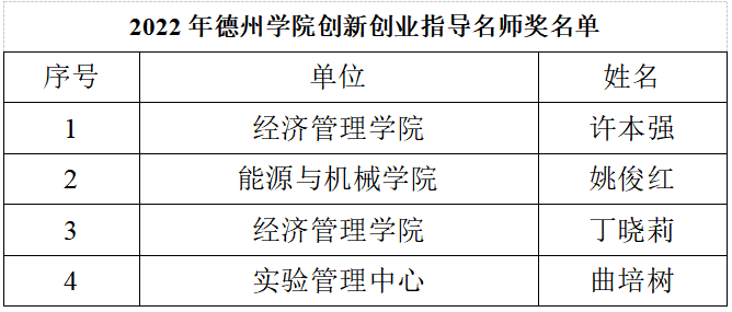 德州学院2022年创新创业指导名师